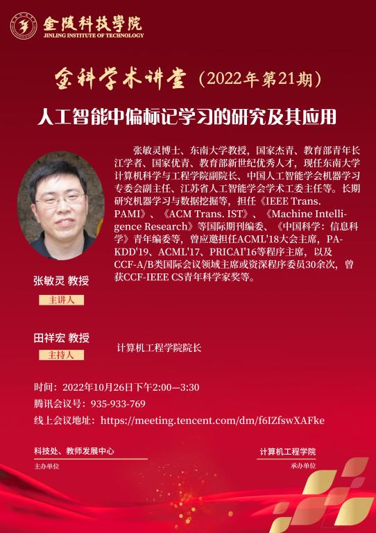 关于举办线上“金科学术讲堂—人工智能中偏标记学习的研究及其应用”学术报告的通知