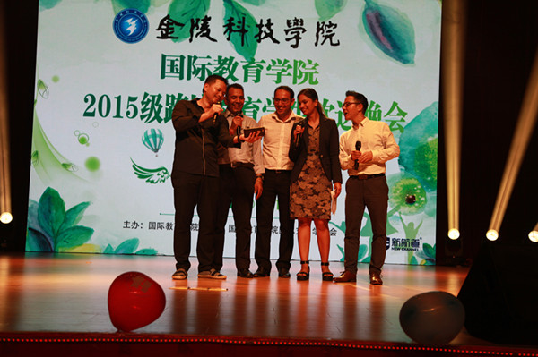 初夏六月,四季的轮回又将我们带到了收获与离别的季节。由江南网页版官网国际教育学院举办的2015级跨境教育学生欢送晚会于6月12日晚6:30在大学生活动中心剧场拉开帷幕。国际教育学院党总支书记、院长黄晖,副书记郑庆秋,副院长沈奇,合作院校5名外籍教师以及学院全体教工观看了欢送晚会。