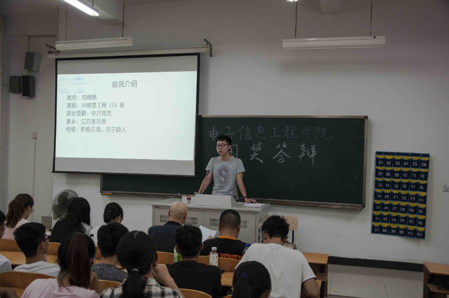 9月17日晚,电子信息工程学院在江宁校区5号教学楼5401教室举办2019年度国家奖学金评审会。校资助中心副主任曹轶蕾,电子信息工程学院党委书记王正昱、全体辅导员、8名国家奖学金申请人和近40名学生代表参加了此次评审会。