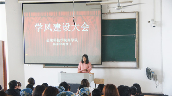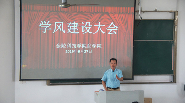 为加强新学期学生风气建设,商学院于9月27日中午在8300教室召开2019-2020学年第一学期期初学风考风班风舍风建设例会。商学院党委副书记朱骅、院学工办副主任顾磊、教务办查慧慧老师、学工办辅导员马丽芳、徐淑娟、潘阳、陈婧、李竹叶、邵梁睿,20、21、22届各班团支书、班长、学习委员,23届新生各班负责人共同参会。