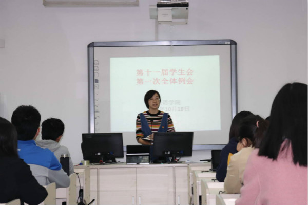 为了顺利开展本学期的学生活动,推进新老干事的工作交接,以更加优良的面貌迎接新学期,10月18日晚,外国语学院于8301教室召开了第十一届学生会第一次全体例会。参加本次会议的有学工办副主任王奕老师,团总支书记杨婷老师以及第十一届学生会全体成员,会议由第十一届学生会主席韩杰主持。