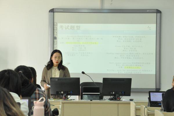 会议最后,17级学生代表分享了专四备考的经验心得。17英语(1)班王佳玉同学详细介绍了自己复习的时间规划与方法,向大家推荐了一些合适的工具书和学习app,并提醒大家科学制定学习计划,劳逸结合,以良好的心态积极备考。