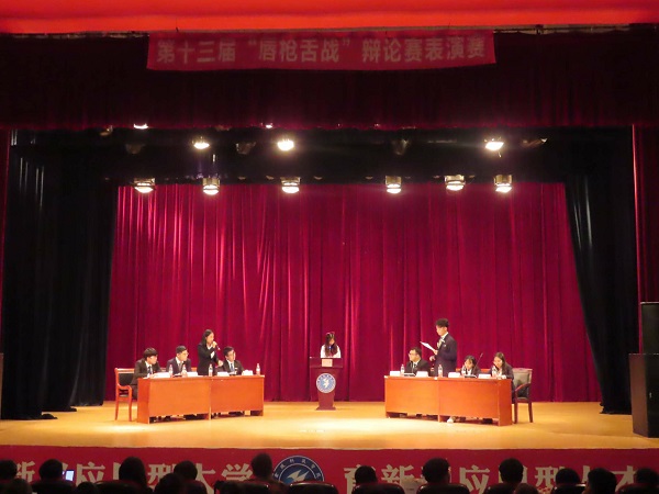本次辩论赛共分为开篇立论、申论、对辩、攻辩、攻辩小结、自由辩论、总结陈词、评委点评、观众提问等几个环节。首先,正方双方围绕辩题“追求一个在一起希望渺茫的人值不值得”展开了论述。在随后的环节中,双方更是争锋相对、步步紧逼、侃侃而谈,现场气氛迅速升温,达到白热化阶段。尤其在最精彩的自由辩论环节,选手时而妙语连珠,诙谐幽默,令人捧腹;时而慷慨激昂,掷地有声,令人愤懑。现场气氛逐渐升温、掌声不断。在评委点评环节,评委们的简洁点评入木三分,恰到好处。随后即是观众提问环节,观众兴致高昂,踊跃发言。不知不觉,一场精彩的辩论赛就在观众们的掌声中落下帷幕。