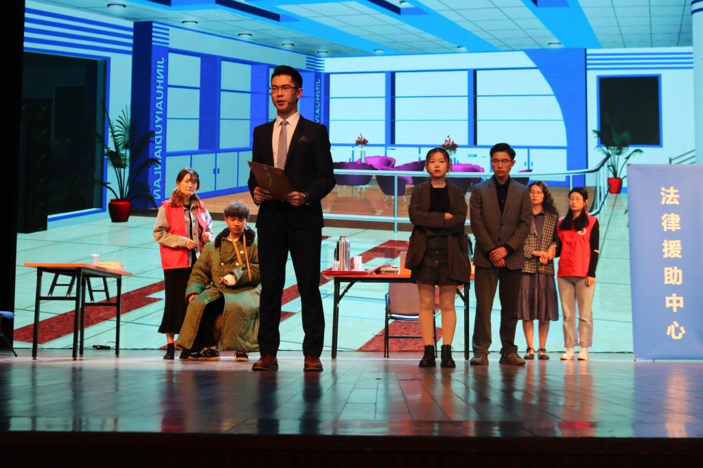 本次展演由南京大学、南京师范大学、南京审计学院等八支参赛,分别以“法律援助”为主题进行了法治情景剧的比拼。由我院17行政管理王业薪同学和17秘书学郭维贤同学原创的情景剧《困境》,讲述了因工受伤的林师傅在郑和广场上寻求法律援助时,受到我院青年法学会志愿者帮助,并在律师指导下,坚定了维权信心,并维权成功的故事。从中也使志愿者们理解了身为法律人所应承担的使命,决心为维护社会公平正义的而努力学习。最终,我院情景剧获得了第二名的好成绩,江南网页版官网荣获优秀组织奖。同时,我院学子还精心准备了独唱《贝加尔湖畔》、舞蹈《水墨江南》、《汉韵霓裳》,为当晚的展演增添了别样精彩。