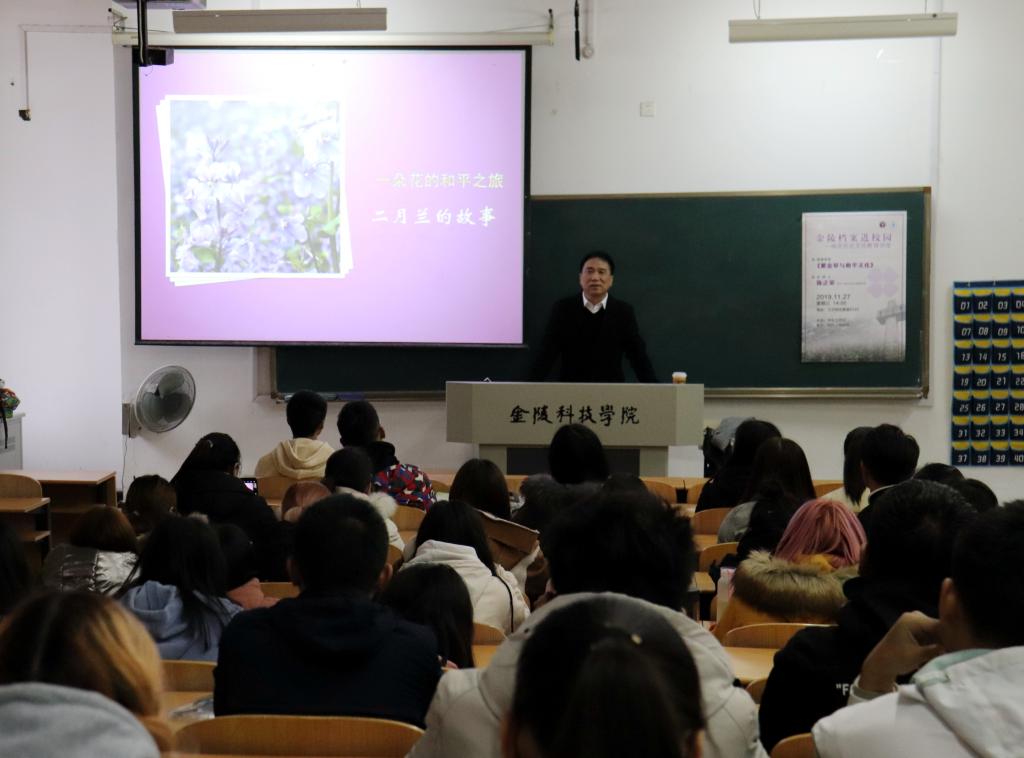 为了让同学们更加深入地了解历史,增强同学们的爱国主义情怀,11月27日14:00,材料工程学院在5101承办由校学工处主办的金陵档案进校园系列活动之“紫金草与和平文化”讲座。本次讲座由南京报业集团副总编辑陈正荣老师担任主讲,材料工程学院党委副书记陈智慧、学工处教育管理科副科长韩冷、材料工程学院学工办副主任许倩颖、材料工程学院各年级代表参加本次讲座。