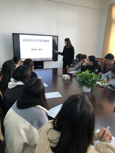 此次交流活动的主题是“英语专业学习的双重性”。李响教授为学生们详细介绍了英语学习的方法和策略,鼓励学生从听、说、读、写、译五方面入手,真正投入到英语学习中来,全面提高自身英语水平。