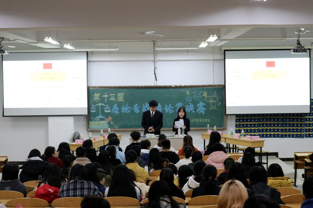唇枪舌战,辩赛场硝烟;口若悬河,理是非曲直。12月11日18:00,人文学院在幕府校区图教楼405举办了第十三届唇枪舌战辩论赛总决赛。人文学院学生会主席黄瞳瑄、副主席彭莹,第十二届最佳辩手孙威康等担任评委。