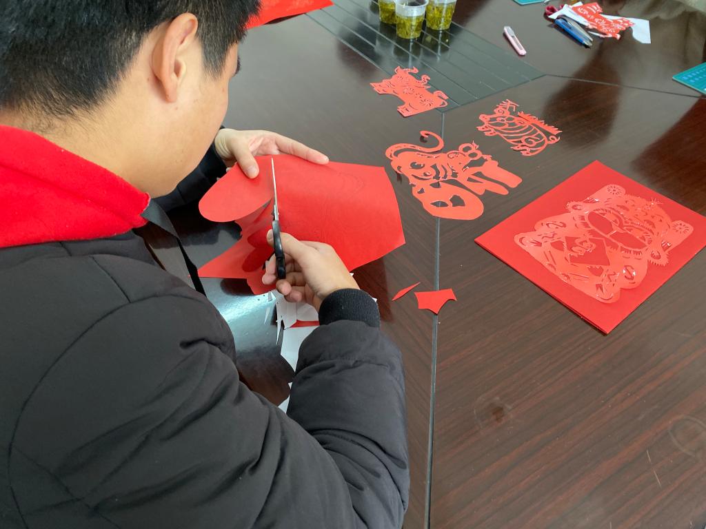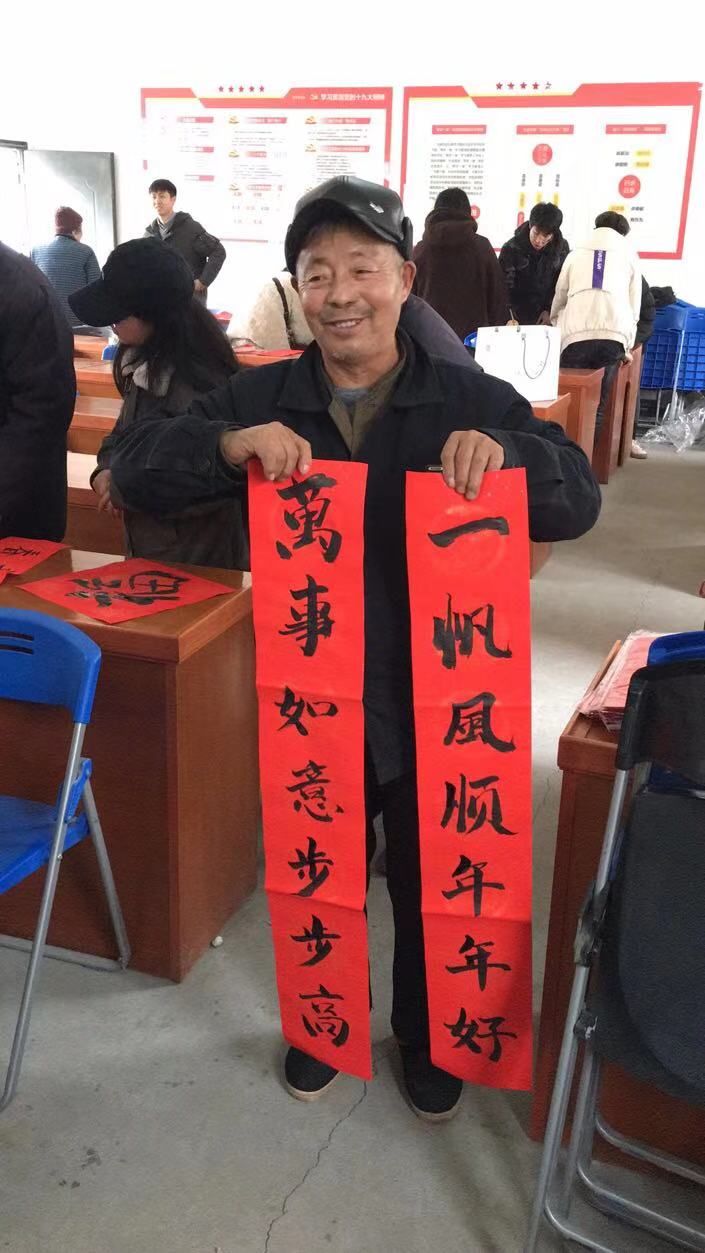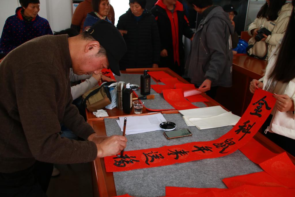 天气虽然寒冷,但依旧抵挡不住村民的热情,师生抵达活动场地时,已经有几十位乡亲等待了。在驼头村挂职的我校党委组织部副部长张昊老师热情接待了大家。在艺术学院丛扬子老师和动漫学院聂钰石老师的带领下,同学们迅速布置好场地,各项活动有序开展。师生们满怀热情,写春联、写福字、剪窗花,好一派热闹的景象!一幅幅充满新春祝福和对美好生活向往的大红春联,一张张饱含生活热忱愿景和对新时代赞美称颂的剪纸窗花在大家的辛勤劳作下华丽诞生,村民们在同学们的帮助下挑选合意的春联与窗花,在那一刻乡亲们的脸上都洋溢着幸福的笑容。活动最后,老师们即兴创作了一副春联,春联包含了江南网页版官网师生对驼头村美好前景的祝福,由艺术学院李维老师书写,赠送给了驼头村。上联:“金科鼠年来送福”,下联:“驼头开春奔小康”,横批:“校地融合”。