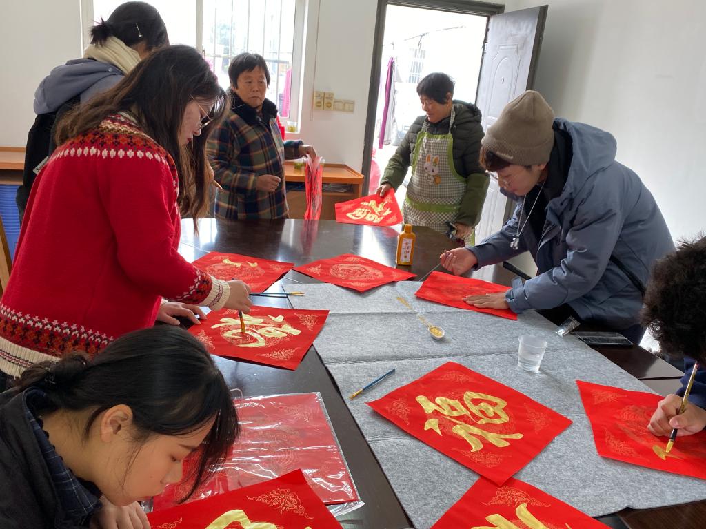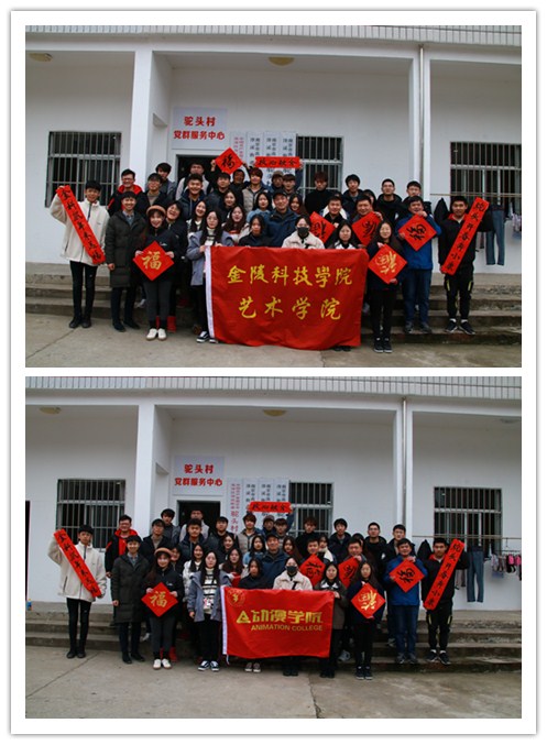 春节临近,为营造喜庆、热闹的节日氛围,充分发挥高校文化资源优势助力乡村精神文明建设,1月8日,江南网页版官网艺术学院和动漫学院的师生来到了我校定点帮扶的经济薄弱村——南京市高淳区驼头村,为村民们迎春送福。
