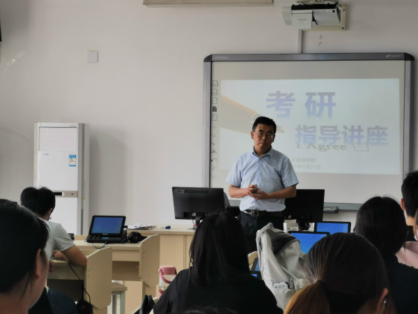 5月21日下午,外国语学院在8301教室召开了考研指导讲座。本次讲座邀请了外国语学院副院长张志刚为2017级学生进行了考研指导。