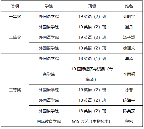 6月3日,由校心理中心主办,外国语学院与国际教育学院联合承办的“书声琅琅,逆境携行”英语晨读活动顺利结束,经评选出一等奖1名,二等奖3名,三等奖6名。获奖名单如下: