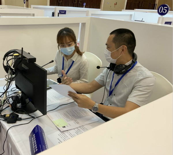 根据海外各个城市时差情况,招聘会从早晨8点持续到晚上10点,外国语学院的学生以饱满的热情和高度的责任感,现场为视频另一端不会中文的外籍求职者提供同声传译服务,确保企业与候选人无障碍沟通。同学们的优秀表现赢得了主办方和现场招聘单位的一致认可,更有两家招聘HR直接把电话给翻译的学生,邀请他们去应聘工作。