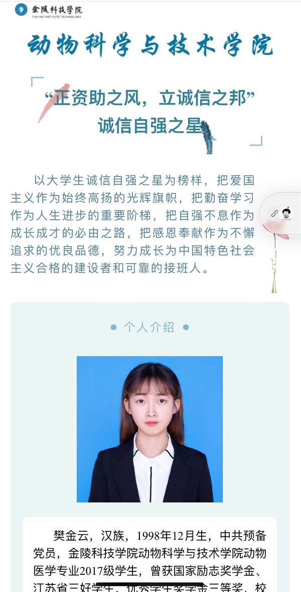 根据学工处《关于开展我校2020年学生资助诚信教育主题活动的通知》要求。6月1日—6月22日,动物科学与技术学院深入开展了“正资助之风,立诚信之邦”学生资助诚信主题教育系列活动,取得了较好的效果。此次资助诚信主题教育系列活动受到了我院校企合作单位正邦集团的大力支持与帮助。