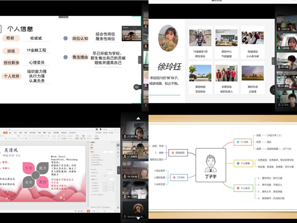 为进一步发挥朋辈榜样在低年级学生中的引航作用,也为更好协助辅导员、班主任做好新生班级管理工作,商学院于6月18日运用网络会议平台开展了2020级新生班辅导员助理线上选拔面试活动。商学院党委副书记朱骅、院学工办全体辅导员、参选学生及班级代表共同参与活动。