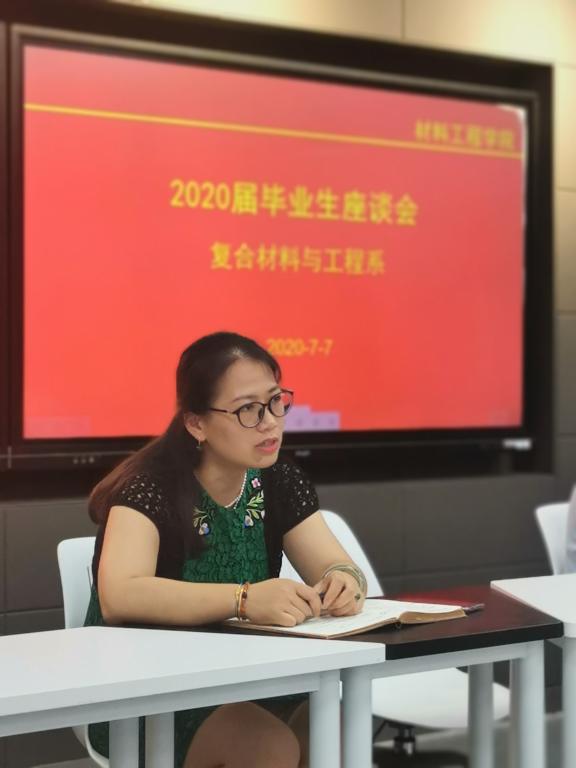 为更好地了解毕业生对学院教育教学、管理服务等方面的意见和建议,7月7日中午12:30,材料工程学院于工科楼A418召开复合材料与工程系2020届毕业生代表座谈会。院党委副书记陈智慧、副院长叶原丰、复合材料系主任杨晓莉出席,毕业班班主任和相关人员参加会议。本次会议由复合材料系教师王昆彦主持,复合材料系2020届毕业生代表参加。