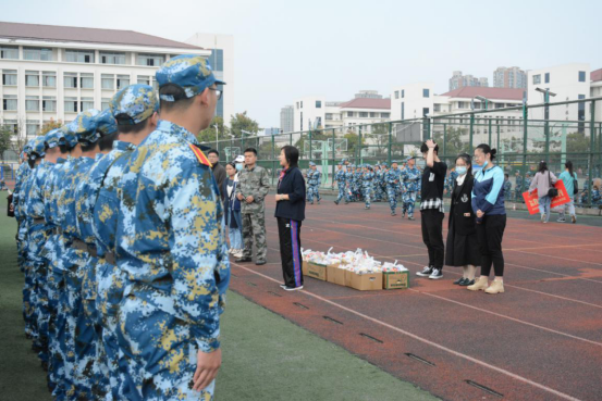 10月13日下午,智控学院党总支书记戴典芬、学工办副主任段蕊老师、新生辅导员张亮老师和各年级辅导员一同前往南区操场慰问军训新生。