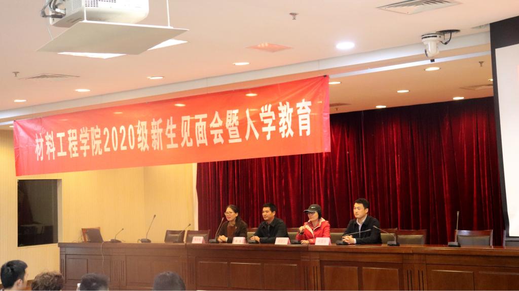为了帮助大一同学更好适应大学生活,更全面的了解大学的学习和生活,促进师生之间的交流,11月5日中午12:30,材料工程学院在图书馆第二报告厅召开了2020级新生见面会暨入学教育。材料工程学院院长郝凌云、党委副书记(主持工作)喻强、党委副书记陈智慧、副院长叶原丰、教务老师和全体辅导员出席会议,材料工程学院全体新生参加。