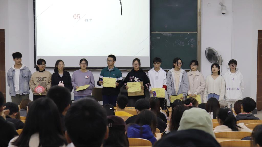 本次国防知识竞赛分为初赛和决赛,初赛笔试前八名同学进入决赛。决赛比赛伊始,主持人介绍比赛规则,进入决赛的八名选手会进行三轮比赛,第一轮为积分赛,每人回答10题,积分前四者进入下一轮。第二轮为pk赛,两人一组进行pk,率先领先2分的小组获胜并进入下一轮。第三轮为终极pk赛,两名选手答题直至一方参赛选手率先领先2分。比赛现场氛围激烈紧张,选手表现精彩纷呈,比分数次追平,观众的心情也随着比赛进程跌宕起伏。为缓解现场紧张的气氛,还组织了观众听爱国歌曲识曲的小游戏。同学们都积极参与,乐在其中。经过激烈的角逐,积分前六的同学赢得本次竞赛的奖项。束方怡荣获一等奖,郝杰、吴宏祥获得二等奖,陆婷慧、张婧、张梓涵获得三等奖。