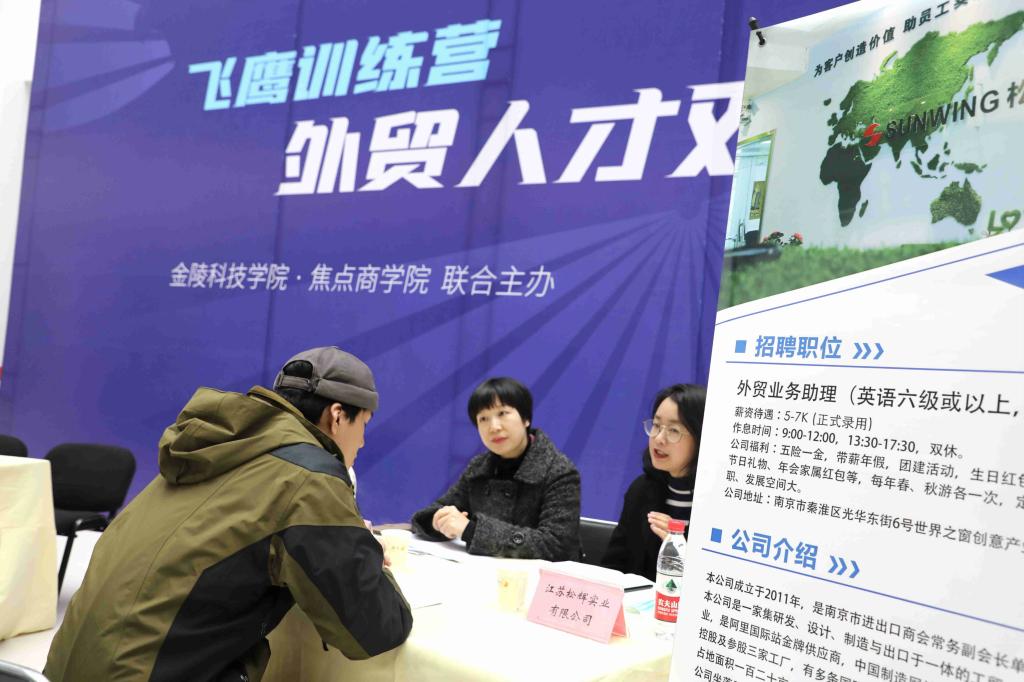 11月25日下午两点,在江南网页版官网科技园3号楼,商学院贸易系举行了2021届贸易类专业毕业生专场就业双选会。参加此次双选会有来自南京、苏州等共十余家外贸类企业,提供了45个就业岗位。招就处闵光琛处长等领导到双选会现场进行指导,并与招聘人员、贸易系专业负责人及应聘学生进行了交流。