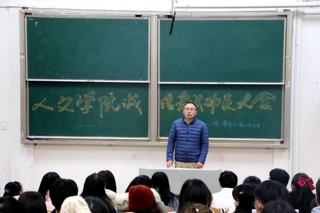 为树立诚信之风,严肃考风考纪。11月27日13:00,在幕府校区教学楼三阶,人文学院举办了诚信考试教育动员大会。人文学院院长张维亚、学工办主任童明明,与全院各班主要班干部参加了此次大会。
