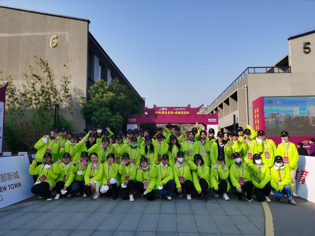 让世界看南京,让秦淮更情怀, 12月6日上午7:30在悦动•新门西体育小镇2020年南京秦淮·城墙马拉松热烈起跑。人文学院160名同学担任了赛事志愿者工作。