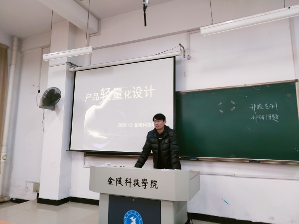 首先,周教授通过一段视频让大家了解了各领域科技创新的相关成果。接着,又对轻量化产品的材料设计、结构设计等方面进行详细的讲解。最后,周教授给同学们介绍了智能制造以及结构优化方面的相关知识。周教授鼓励同学们要树立远大理想,培养科学精神。要敢于在科学研究上攀登,在未知领域中探索。要树立正确的心态,脚踏实地,去迎接新的机遇与挑战,实现自己的梦想。同学们纷纷表示,收获颇多,对智能制造方面的知识有了更深的了解,更加明晰了自己的奋斗目标和发展方向,在今后的学习中,要不断完善自我,提高自我,扎实专业素养,使自己各方面的能力得到锻炼和提高。