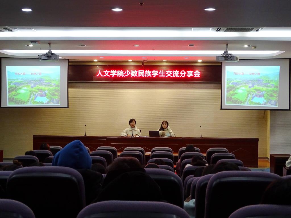 12月23日下午1:00,人文学院在幕府校区图书馆报告厅,举办了以“共赏民族风采,互诉民族衷肠”为主题的少数民族学生交流分享会,学工办主任童明明老师、辅导员梅冬琴老师,与我院百余名少数民族同学参加了此次活动。