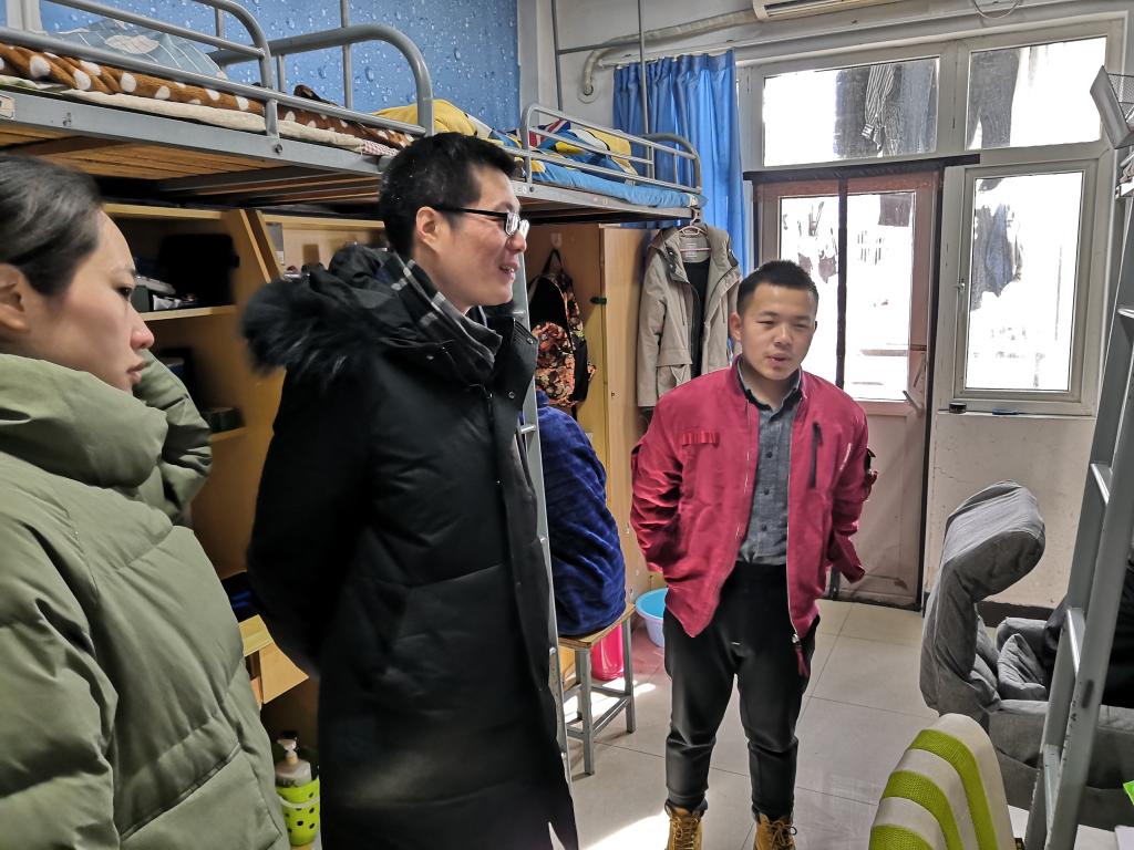 1月7日上午,我院党总支部副书记、副院长匡才远,带领全体辅导员深入宿舍开展宿舍安全教育工作。匡书记带领大家走访了我院学生宿舍,尤其是退伍士兵、考研学生、困难生学生宿舍,与同学们进行了亲切交谈。一方面提醒大家在秋冬季节注意防范风险,另一方面,提醒大家出行途中注意防护,并对于学生遇到的困难和问题给与解答。