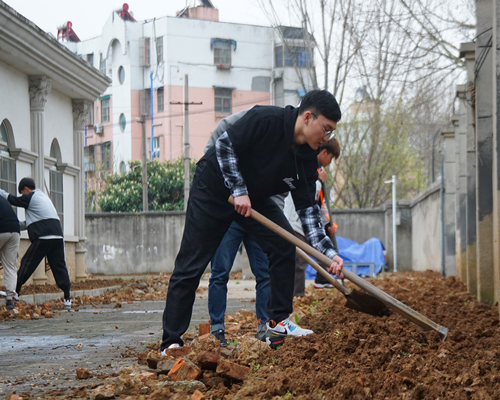 以志愿服务为载体,强化学生公益劳动意识。三月是学习雷锋志愿服务月,结合动科学院打造的教学试验田—中草药观赏园,让同学们拿起锄头,翻土除草,耕种草药,实地参与并观察各类中草药的生长,引导学生在实践中加强理论学习,勤于思考,勇于实践,敢于探索。19动物医学(单)班的张颜龙同学作为翻新试验田的一员,他说:“在劳动的同时体会到专业实践,一举两得,从劳动中收获快乐,很有意义。”