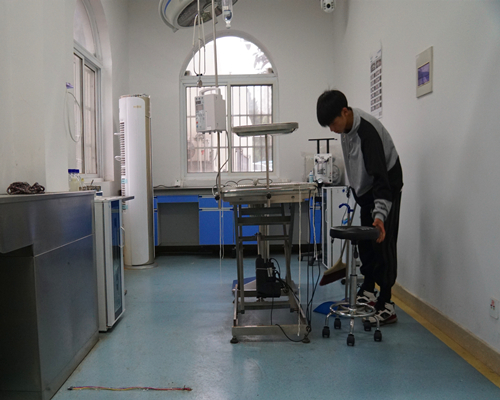 以专业实践为依托,提升学生专业劳动技能。依托动物教学医院基地,参加劳动实践活动的同学利用课余时间,在手术室里,清洗器皿、擦拭医疗设备;在药房里,分类有序整理药瓶摆放,实现在校期间就能实习实践专业知识。动物教学医院周程远老师说:“劳动处处有学问,开展劳动教育的同时注意启示学生运用所学知识和方法进行安全劳动、创造劳动,以促进体脑结合,知行合一。”
