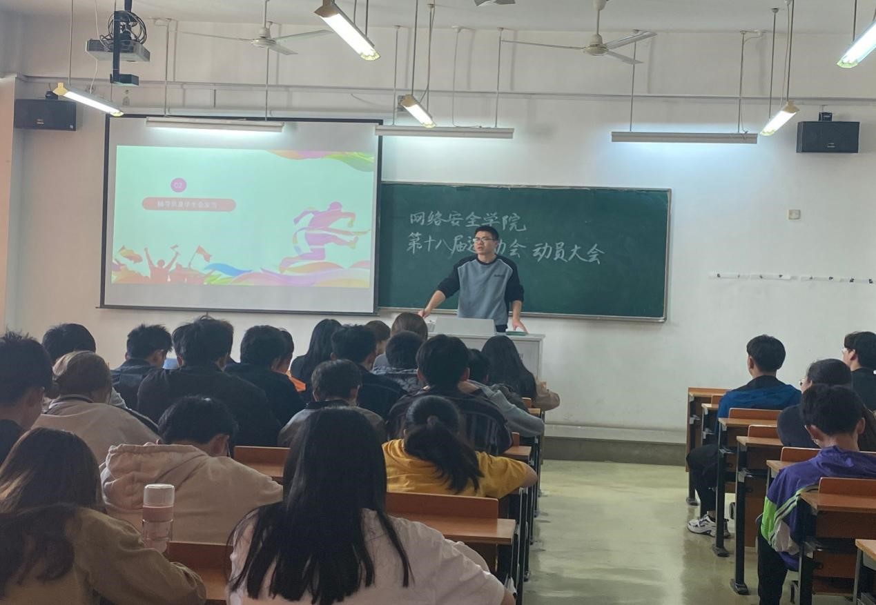为了鼓舞运动员士气,增强运动员比赛信心,4月20日下午网络安全学院在1409举办第十八届校运动会动员大会。网络安全学院团总支书记孙垒、辅导员马晓辉出席本次会议,网络安全院全体运动员参加。
