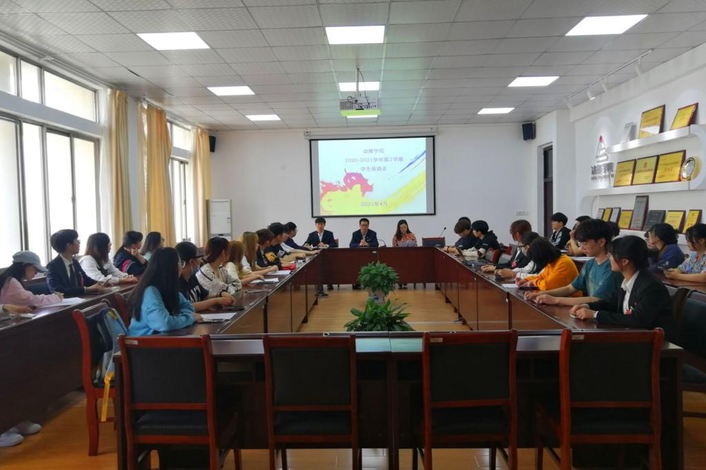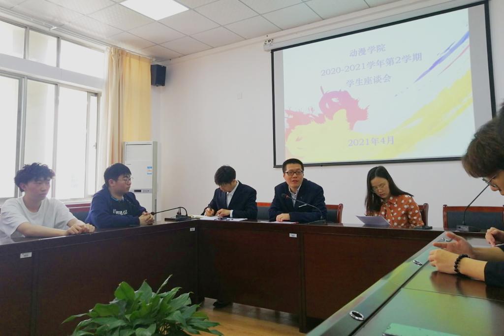 4月28日,动漫学院在7406教室召开了2020-2021学年第2学期学生座谈会。动漫学院党总支部副书记、副院长匡才远,学院教学管理办公室副主任刘丹老师,辅导员聂钰石老师,各班班长、学习委员参加了本次座谈会。