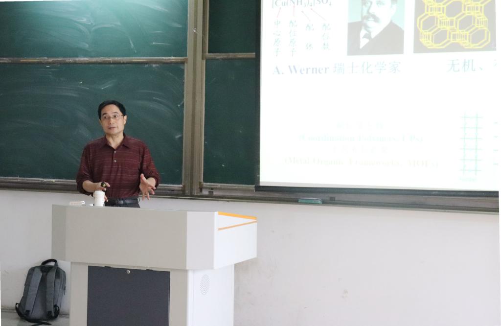 孙为银教授报告题目为“金属有机框架材料与二氧化碳转化”,孙教授对金属有机框架(MOFs)材料的组成、孔道/孔洞结构以及可修饰、可复合等特点进行了讲解,并展望了其在识别、存储、催化等方面的应用。