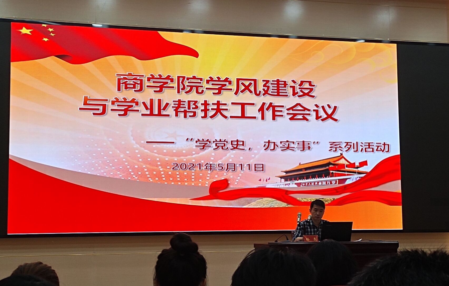 5月11日,商学院在科技楼1号楼报告厅召开本学期学风建设与学业帮扶工作会议,商学院党委副书记孙亮、商学院辅导员以及各班班长、团支书、学习委员和生活委员参加了本次会议。