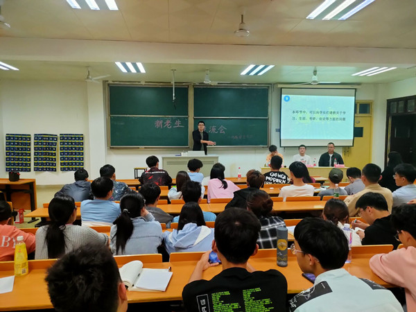 为进一步营造良好学习氛围,合理规划大学生涯目标和规划,5月12日晚网络安全学院在1432教室举行新老生交流会。本次活动邀请三位优秀学生代表袁欣伟、储成晟、刘耀文为同学们分享他们学习生活的经验体会,学工办副主任孙垒和近200名学生参加本次活动。