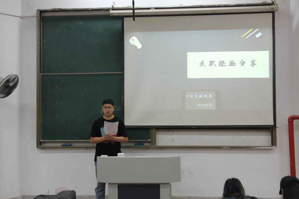 活动伊始,结合当前毕业生所面临的就业和升学问题,惠老师首先为同学们进行了细致地分析,引导毕业生总结和分享经验,发挥榜样作用,为低年级同学答疑解惑,指明方向。来自17古典文献学的郭蕊蕊同学和17古典文献(古籍修复)张诗怡同学,首先分享了自己在备战考研中的经验,鼓励大家提早规划,明确专业兴趣方向,做充足准备,不盲从不跟风。17古典文献学的陈畇如同学,则从扎实的专业学习中,总结了考研复试的经验。惠老师点评道:“专业是根,优秀的专业素养,是同学们前行的驱动力。”接下来,惠老师请17古典文献学张宣和陈套两位同学,分享了求职经验,即认清加分项和减分项,要“抓重点,破难点,创亮点”,发挥自己最大的优势,最终脱颖而出。最后,惠老师鼓励大家要抓住机遇,选准目标和方向,夯实专业知识,不断提升综合能力!