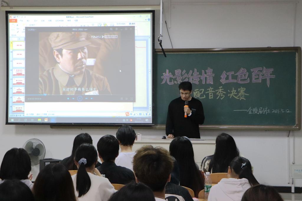 为庆祝中国共产党成立一百周年华诞,5月14日下午4:30,在图教楼B204人文学院举办了“光影传情,红色百年”校园配音秀大赛决赛,本次活动由金陵剧社主办,辅导员高欢欢老师和各年级学生代表参加了活动。