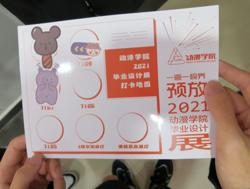 为深入开展党史学习教育,践行“我为学生办实事”,提升学生专业素养,让每一名学生都在积极快乐的教学中成长、在轻松愉悦的氛围中学习,动漫学院团总支于6月6日,在七号教学楼“一画一视界”毕业设计展中举办了“趣味观展 打卡实践”活动,学院辅导员、各年级同学们参加了本次活动。专业的导览图、时尚新潮的打卡形式、青春洋溢的志愿者、神秘的抽奖活动,扩大了此次毕业设计展的影响力,提升同学们的专业实践效果。