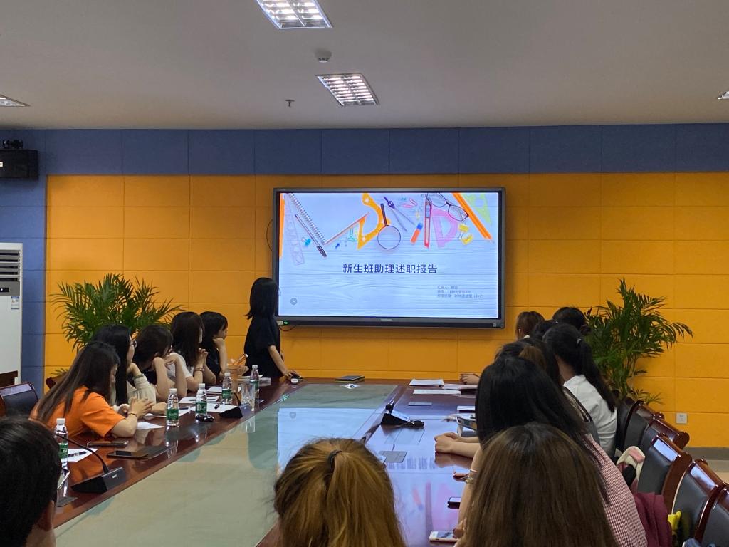 为了正确评价新生班辅导员助理的工作能力,督促辅导员助理不断提高业务素质,认真履行岗位职责,商学院于6月7日18:30在科技楼3号楼409会议室开展2020级新生班辅导员助理考核工作暨述职大会,院学工办副主任徐冰洁、院学工办全体辅导员、全体2020级新生班辅导员助理以及学生代表共同参与活动,会议由辅导员李竹叶主持。