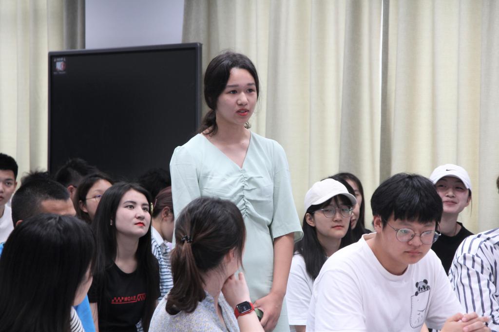 本次团课“讲师团”来自“第十一届全国大学生红色旅游创意策划大赛”学生团队,他们从不同角度和维度,分享了参赛过程中对党史学习的收获和感悟。19旅游管理的杜旭同学,从拍摄实践和精神视角,深入探究了南京长江大桥的红色精神,鼓励同学们接续前人的奋斗创新精神,贡献青春力量。20旅游管理的彭森同学,分享了以“宁听峥嵘岁月,探索红色脉搏”为主题,号召同学们学党史,强信念,在学习、实践和调查中树立正确的世界观、人生观和价值观。20旅游管理的高峰同学,讲述了雨花台精神中许包野烈士与“迎春花”的动人故事。国风浩荡,吾辈英豪,青年有志,国之栋梁;青年担当,国之希望;青年爱国,国将富强!现场同学们聆听了团课后,踊跃向三位主讲人提问,少数民族预科班同学刘若冰说:“听了学长学姐的分享,我的感受颇深,红色精神中不仅是一座桥,一个名字,更是我们这个民族绵延万万里的脊梁!我们是中华民族大家庭中的一员,如果我们每一个人都用‘浮舟沧海,立马昆仑’的精神去拼搏去奋斗,那么我想,中华民族的伟大复兴指日可待!”。