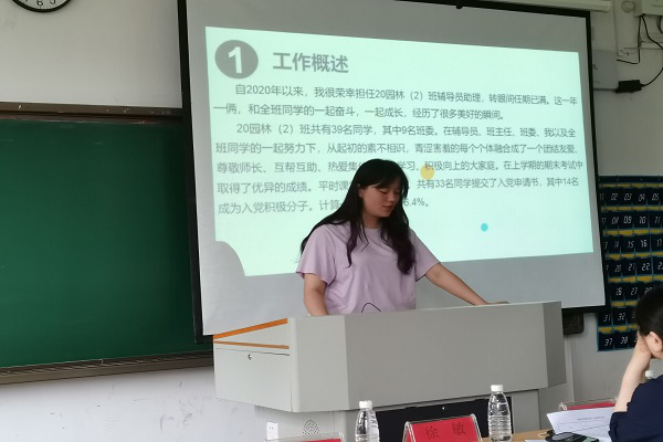 接着各位辅导员助理主要从工作情况、工作总结、工作反思及未来展望四个方面进行述职报告,他们条理清晰,将自己班级的情况以PPT和口述的方式有条不紊地表达给在座各位,方便老师以及同学更加深入的了解班助工作,并依此进行更客观的评价。最终,梁演扬、袁聪考核优秀,蒋雨柔、张渴、刘宁静、黄艳菊、汪荷清、高洪宇六位同学考核合格。