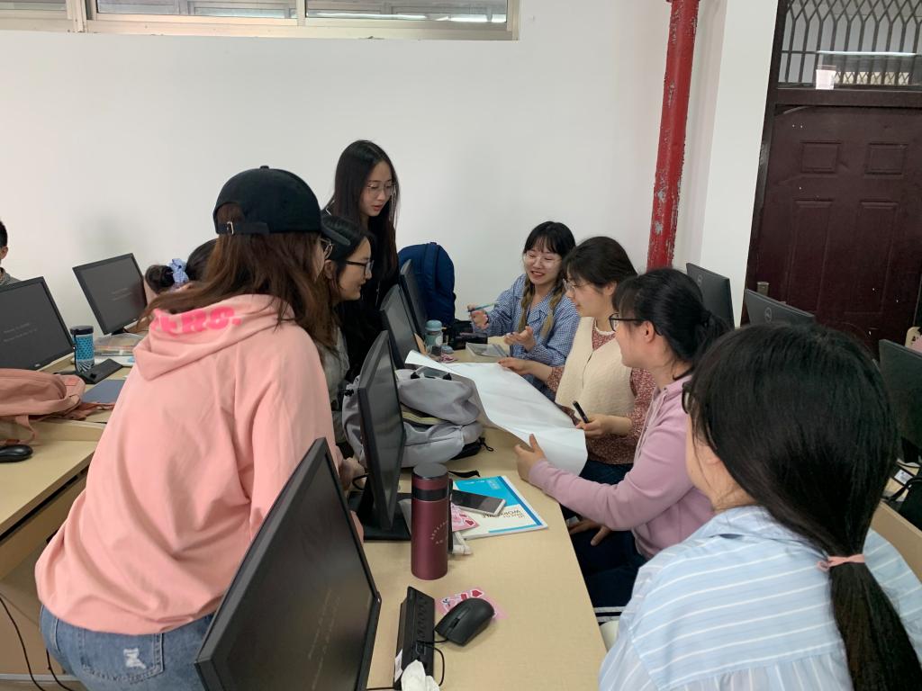 活动开始,主讲人王聪向学生发放了公司设计部设计的企业文化贴纸,并结合PPT,从多个维度详细地向学生讲述了公司概况、公司发展历程、品牌愿景、企业文化和公司福利等,让学生初步了解了南京卡佩希网络科技有限公司。随后,主讲人组织同学们做了泳装设计,通过与企业日常工作相贴合的活动,成功调动了学生参与互动的热情度和积极性,带动同学们提前感受了企业文化氛围。