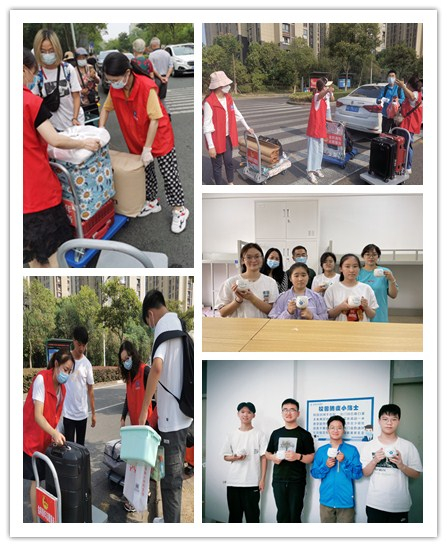 学院党总支部书记李星,主持工作的副院长张志刚,学工办副主任王奕,团总支书记杨婷,第一时间赶赴新生宿舍,对萌新的到来表示欢迎,并送上学院为每位新生特制的标有新生姓名的水杯,杯身刻着“厚德兴业”和英文“Be the best of whatever you are.”一杯子的健康关怀,也是对学生一辈子的情谊和祝福。在了解了学生们的住宿情况后,强调了疫情防控与宿舍安全,叮嘱同学们及时下载国家反诈骗APP,注意人身财产安全,谨防电信诈骗。