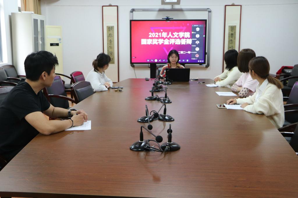 为做好2021年国家奖学金评审工作,10月11日午12:30,在文科楼310,人文学院举办了2021年国家奖学金评选线上答辩会。院党委副书记韩铖、学工办主任童明明、副主任高欢欢、辅导员马思齐、梅冬琴老师出席本次会议。辅导员汪新老师担任主持人。