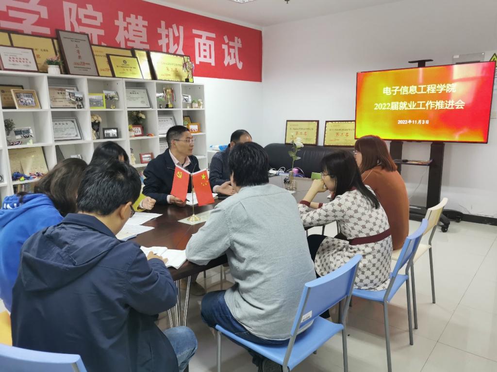 11月3日下午,电子信息工程学院召开2022届毕业班班主任就业工作推进会,就做好毕业生就业工作进行部署和进一步动员。院党委副书记吴有龙、2022届班主任及学工办全体辅导员参加此次会议。
