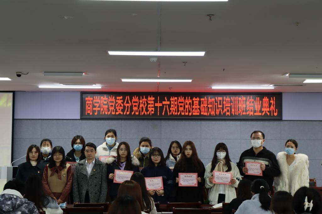 为进一步加强党校阵地建设、提高党员的党性修养,在校党委党校的指导下,商学院党委分党校于11月12日至12月10日举办第十六期党的基础知识培训班。经理论和实践环节培训,328名学员经考核结业,其中40名学员被评为优秀学员。