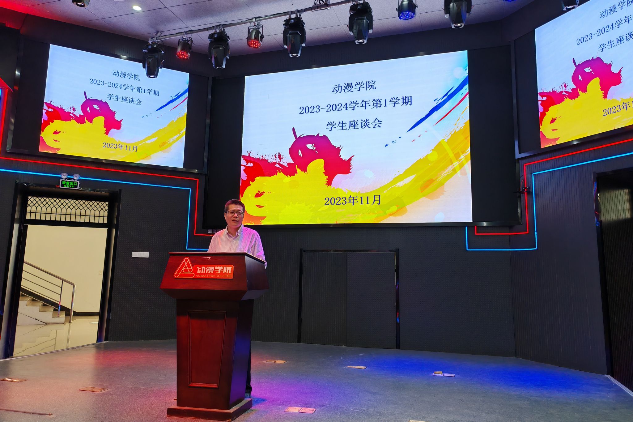 为贯彻落实学校“时代新人铸魂工程”实施方案文件精神,加强学生思想政治教育,着力建设优良学风,11月3日,动漫学院在7100召开了2023-2024学年第1学期学生座谈会。动漫学院党总支部副书记、副院长匡才远,学院教学管理办公室副主任夏鷃晏老师,全体辅导员,各班班长、学习委员参加了本次座谈会。