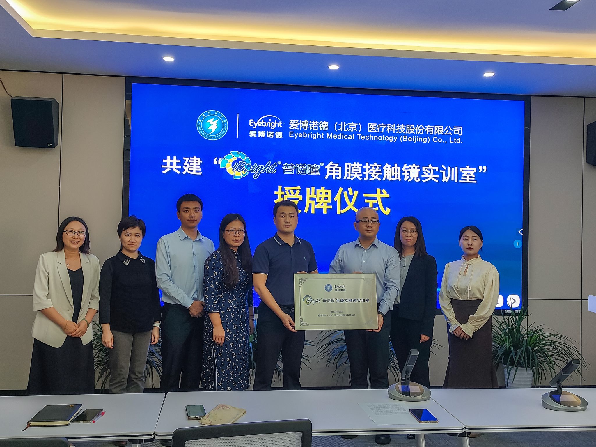为进一步提升眼视光专业产教融合能力,提高学生的专业实践能力,增加教学工作的活力,材料工程学院与爱博诺德(北京)医疗科技股份有限公司携手,于11月3号下午在材料工程学院知行楼A506会议室开展校企产教合作与捐赠授牌仪式暨普诺瞳“星火计划”角膜塑形镜专项培训证书授予仪式活动。材料工程学院党委书记叶原丰,党委副书记陈智慧,视光工程系贾志超主任、许薇副主任、王玲副教授参加。爱博诺德东南大区高级大区经理王玮、公司代表及资深培训经理等企业人士出席了活动。