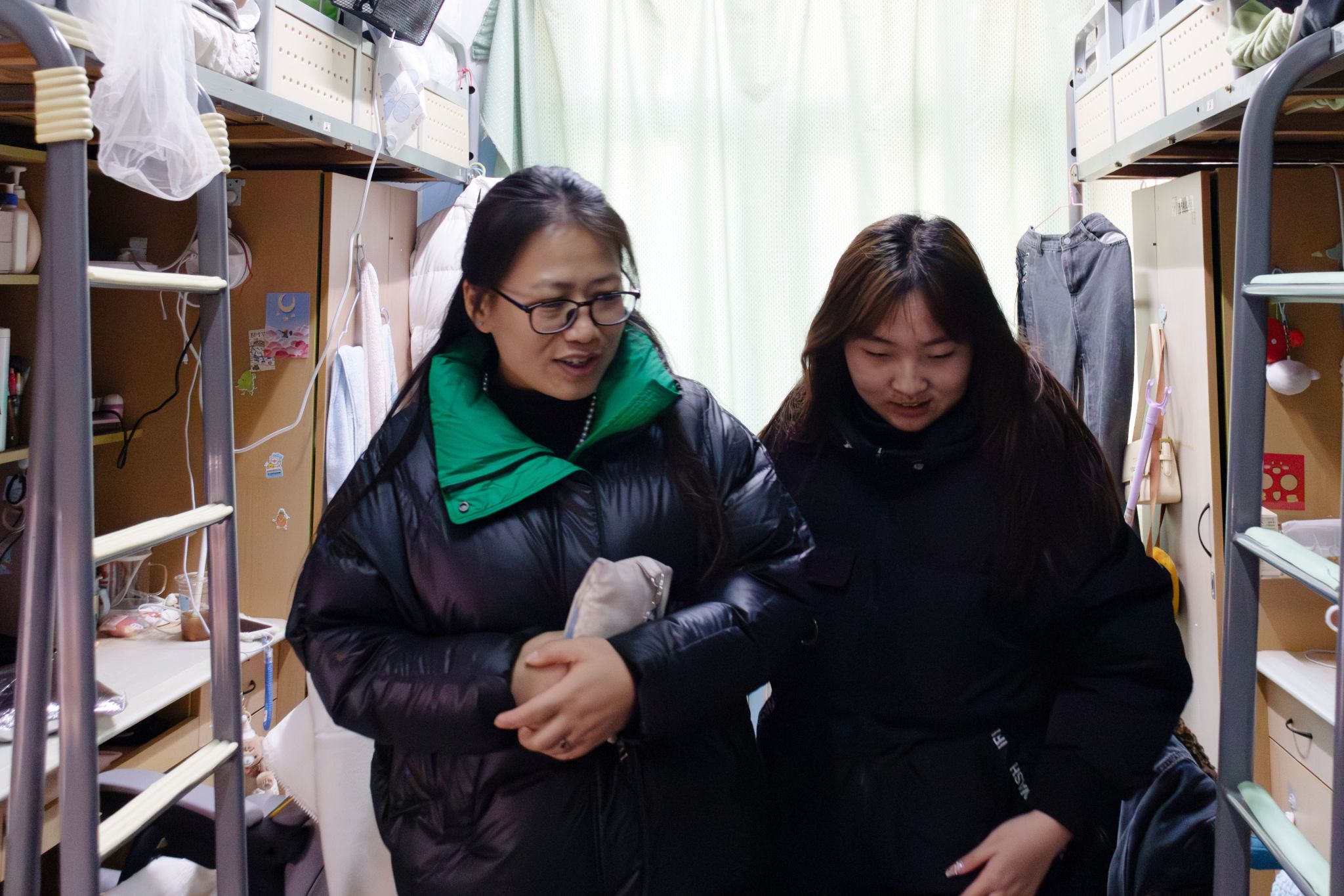 走进宿舍里,陈智慧副书记亲自为获得荣誉的宿舍进行颁牌,她表示星级宿舍是对同学们的肯定和褒奖,是大家的学习榜样。陈智慧副书记还与同学们进行了亲切地交流,鼓励同学们要继续保持良好的生活习惯和卫生习惯,注重心理健康,学会在期末备考时劳逸结合,寻找学习和休息的平衡点。辅导员赵志伟为四星级宿舍挂牌,对同学们在宿舍卫生安全、宿舍文化建设方面取得的成果表示了充分的肯定。获奖宿舍同学纷纷表示会倍加珍惜这份荣誉,为营造良好的宿舍环境做出更多的努力。