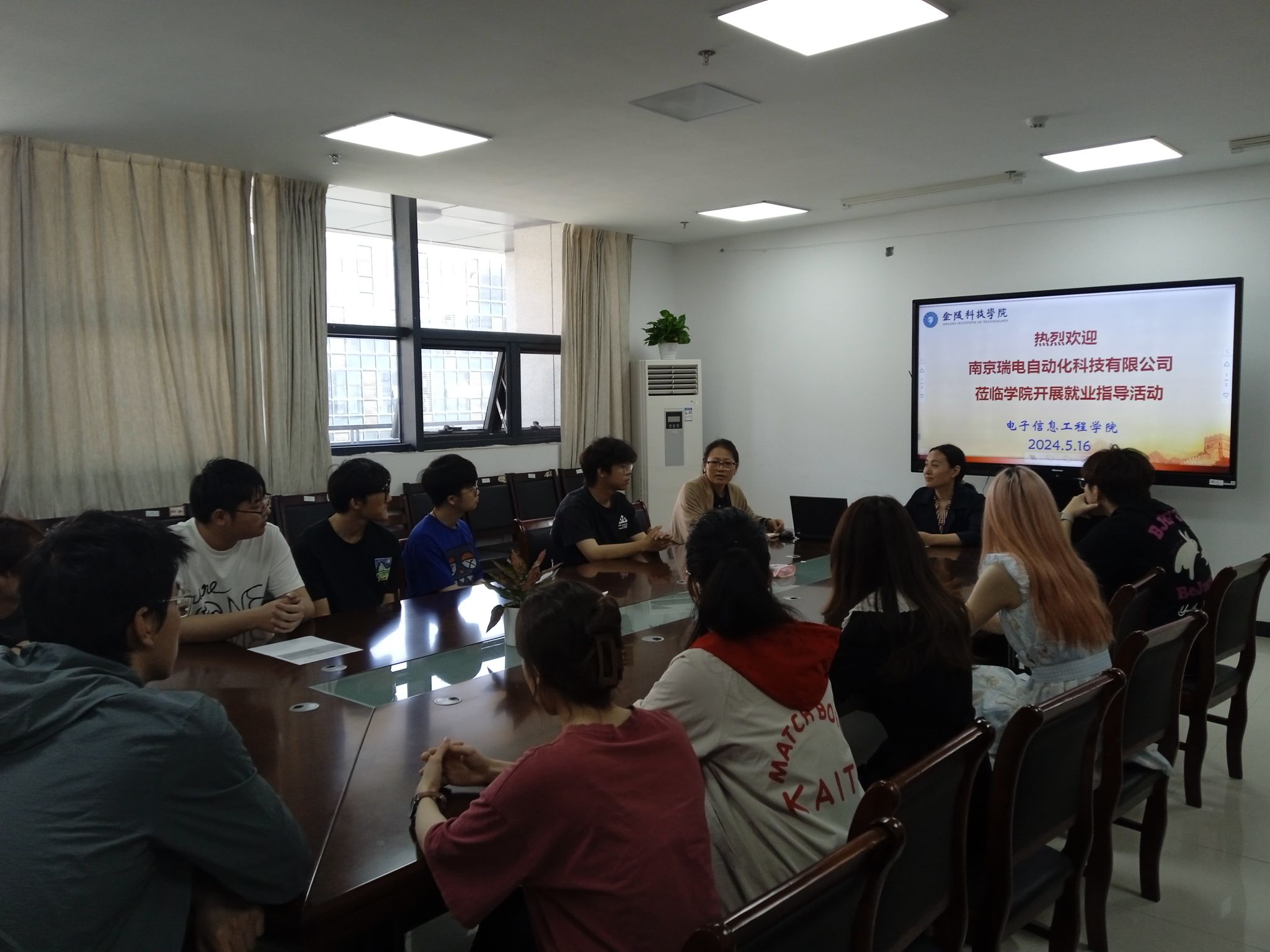5月16日上午,科技楼4号楼410会议室迎来了别开生面的求职技巧讲座:电信学院邀请到南京瑞电自动化科技有限公司人事经理周敏亲至学院现场为同学们的简历把关、指导面试技巧。24届、25届毕业生代表参加了活动,活动由电信学院党委副书记陈智慧主持。